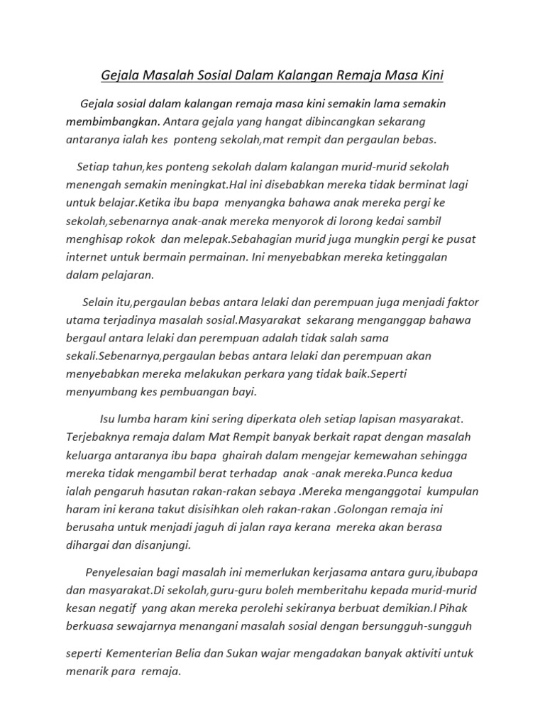 Gejala Masalah Sosial Dalam Kalangan Remaja Masa Kini Pdf